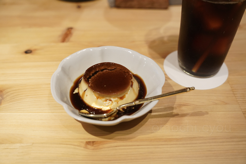 お茶だけのつもりで入ったけど、メニューをぱらぱらめくっていると、「オリジナルブレンドのエスプレッソを加えた珈琲屋ならではのプリン」なる説明を発見。やっぱりここはプリンでしょう。ということで、プリンのドリンクセットを注文してみる。