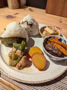おにぎりと味噌汁だけのBセットも迷ったけれど、やっぱり色々食べたいので、副菜つきのAセットを注文しました。