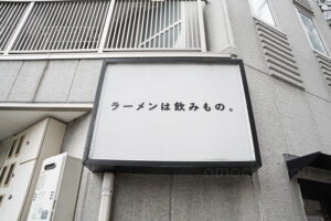 JR六甲道駅の北側、静かな住宅中心エリアの中にある「ラーメンは飲み物」の看板。