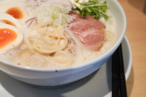 ここにくると絶対に鶏白湯を選んでしまう、恐ろしい吸引力。味噌も魚介も絶対おいしいんだけど、それよりも鶏白湯、ダイソンぐらい呼ばれる。怖いなぁ。