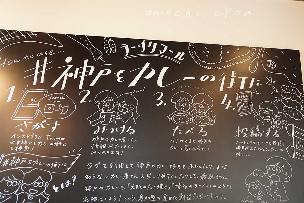 席に案内されて最初に目に入るのは、#神戸をカレーの街に というハッシュタグ。